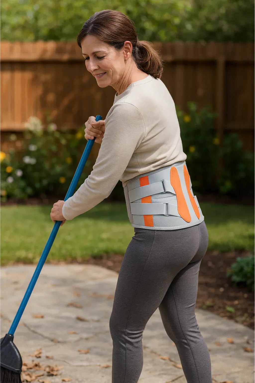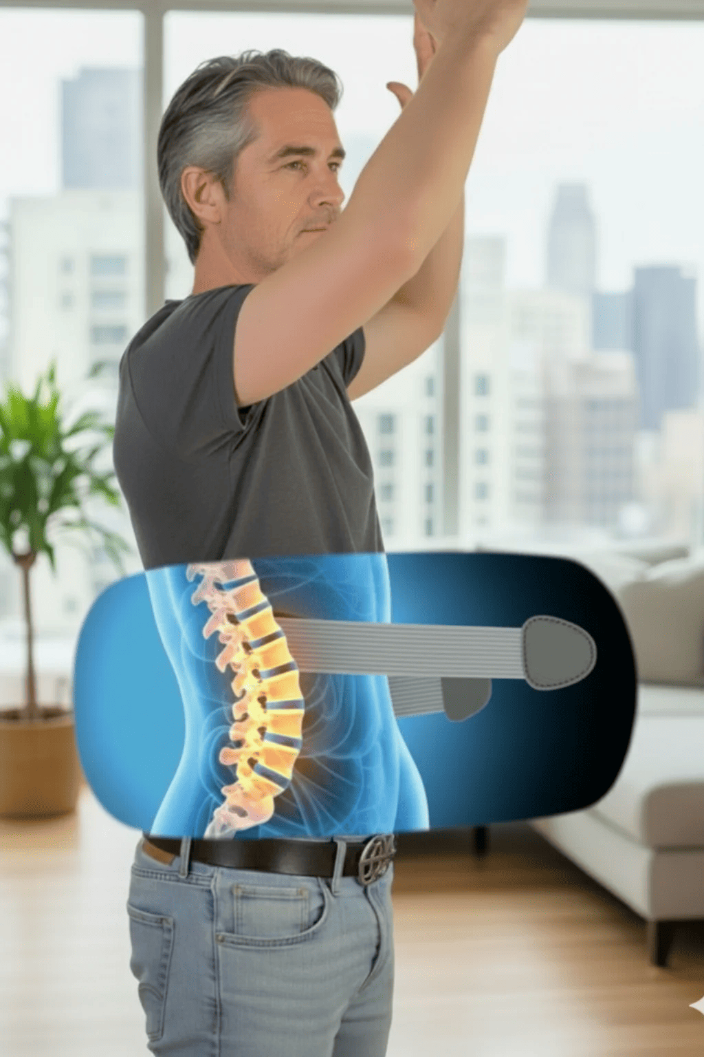 La Compresión de Doble Zona actúa como un conjunto extra de músculos centrales — eleva y descomprime tu columna justo donde el dolor es más intenso, permitiéndote respirar y moverte con naturalidad (a diferencia de esos corsés rígidos y calurosos que te hacen sentir atrapado).